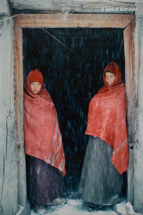 彼は万一に備えてたくさんの薬を用意していた。火傷が化膿して苦しむ2才の子どもを持参の薬で助けた。これをきっかけに一日に40人を超える人が治療を求めて彼のテントを訪れるようになり、王様の肩こりの治療を頼まれるほど評判が高まる。もちろん小松氏は医師でもマッサージ師でもないが、村の人々との交流はこうして深まっていった。半年近くは厳冬というこの地で、大麦や蕎麦を育て、家畜を飼う。そして人間性に満ちた日々の暮らし。自分自身が励まされたと写真集に書いているように、人間の心の原点を考えながら写真を撮っている。