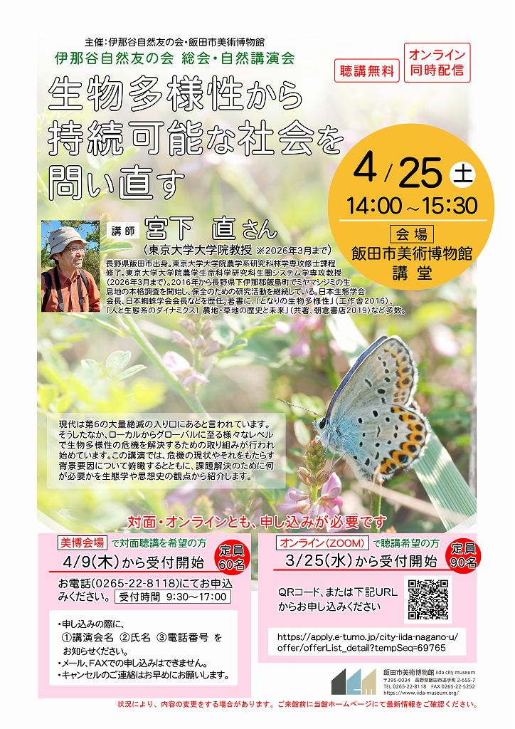 4月25日◾️自然講演会「生物多様性から持続可能な社会を問い直す」(要申込)【対面+オンライン】