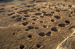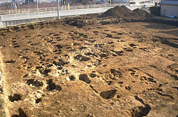 | ●内 容 | 恒川遺跡群の北部に当たり、阿弥陀垣外地籍は小範囲なので新屋敷地籍と一括します。新屋敷地籍の北側は旧河道を示す窪地となり、その肩の箇所には地形にそった区画溝がある。その南側には規模の大きな掘立柱建物跡と区画溝、長方形の竪穴住居跡が確認されて、郡衙に附属する宿泊施設である「館」の可能性が指摘されている。新屋敷地籍南側部分と阿弥陀垣外地籍は側柱建物跡と竪穴住居跡があり、郡衙に関連する居住域と考えられます。 |