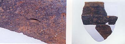 籾圧痕が付着した土器とそのレプリカ写真 |