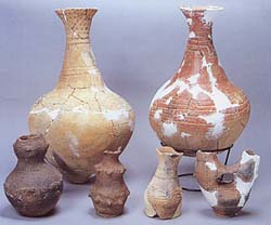査資料ととそれ以前に発見された遺物に大別される。大形壺と特殊な器形の小型壺が多