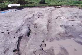 址30軒が調査された。中世は溝で囲まれた14世紀から15世紀の屋敷跡を確認し、付属施