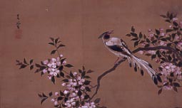 | 鈴木芙蓉 「海棠に小禽図」 寛政10年(1798) 絹本著色 34.5×56.5p 軸装一幅 |