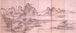 | 鈴木芙蓉 「山水図屏風」 寛政2年(1790)頃 絹本淡彩 各隻157.0×354.0p 屏風六曲一双 |