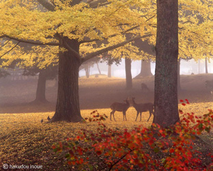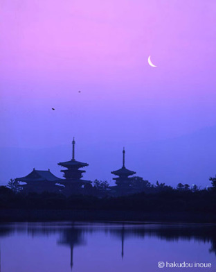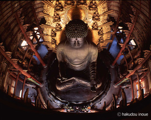 井上博道は日本海に面した但馬の禅寺で生まれ育った。父は禅僧である。京都の龍谷大学で仏教史学を学び、在学中から司馬遼太郎と親交を持つ。卒業後、大阪の産経新聞社に入社し、産経新聞の文化部長であった司馬氏の影響を強く受ける。紙面で「美の脇役」の連載を始めるにあたり、司馬氏の連載写真に専従することになる。私(司馬)の考えたことを、自らの感性で発見し、美の分野として再現できる写真家は井上博道しかいない、と司馬氏は絶賛している。そして写真を撮るだけではなく、私がなすべきことの九割以上を井上博道がやってくれたと、司馬氏は「隠れた仏たち」というエッセイに書いている。その後「美の脇役」は出版され井上の代表作のひとつになっている。11年いた新聞社を辞して独立する。それからは、日本の文化を基調とした日本人の心の表現に力をそそいでいく。種田山頭火の足跡を追い、また万葉風景との対話を写真に写し撮っている。