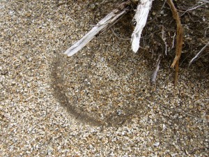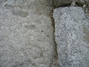 木曽殿越から北方には、暗色包有物を多く含む木曽駒花崗岩、南方には、白っぽくて粒の大きな伊奈川花崗岩が分布している。ちょうど、この鞍部付近が岩相境界になっている。 しかし、登山道沿いで境界を見つけるのはなかなか難しい。岩石が風化していたり、周辺部は岩相変化が著しいからだ。でも、、木曽殿山荘へ入る階段の敷石に、木曽駒花崗岩と伊奈川花崗岩の両方がみられるので、ここでそれぞれの花崗岩の特徴を確認しておくと良いだろう。 |
