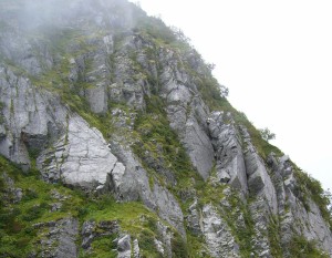 花崗岩には、マグマから冷却するとき収縮するために、節理という割れ目ができる。また、周りから力を受けて、節理ができることもある。 節理にそって水がしみこむようになると、凍結融解を繰り返すことによって、風化が進行する。すると、急傾斜地では、節理面ではがれて垂直な岩壁ができる。一方、稜線や尾根では、節理面が両側にはがれて岩塔ができる。 節理面の間隔も地形形成に大きな影響をもっているらしい。間隔が狭い地域では、風化が進行して緩傾斜地や鞍部をつくる。逆に、間隔が広いと、岩塔や岩壁が発達する。 |