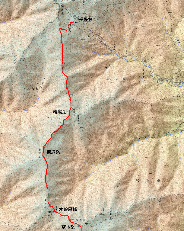 標高2500m以上になると、日帰りで稜線歩きは難しくなる。そこで、ロープウェイを使って千畳敷までいき、ここから南へ2泊3日の稜線歩きをすることにした。 初日は稜線を南下し、木曽殿山荘へ宿泊。2日目は空木岳−南駒ヶ岳−越百山−奥念丈岳とたどり、念丈岳南の水場でテントを張った。3日目は本高森山を経由して、高森ゴルフ場へ下山した。 今回は、植生専門の同僚と一緒だったため、高山〜亜高山帯における植生と地形との関連を学ぶことができた。 ルートが長いので、前半を千畳敷−空木岳、後半を空木岳−奥念丈岳と、分けて紹介する。 |