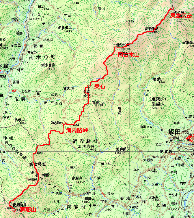 <南 部> ■奥念丈岳−摺古木山(2006.10.3-4) ■摺古木山−県民の森(2005.10.19) ■清内路峠−県民の森(2005.10.1) ■恵那山−清内路峠(2005.5.9-10) 1.清内路峠−富士見台 2.富士見台−恵那山