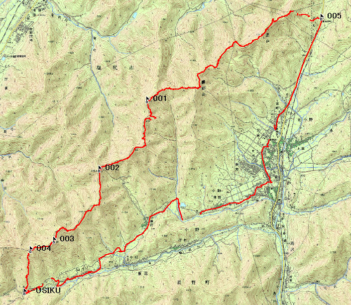 善知鳥峠からしばらくは塩尻市有林の中のはっきりしない作業道を歩く。尾根に上れば市有林の標識が埋め込まれた作業道が見つかる。この作業道は、はっきりした送電線の巡視路に合流する。おそらく、峠の北側を探せば、巡視路の入り口が見つかるだろう。 主稜線に近づくと、足下にはときどき石灰岩が転がっている。 1/2.5万地形図「北小野」の北東端には、石灰岩鉱山の印がある。ここからはウミユリやサンゴが見つかっているので、もしかしたら、ウミユリの化石が見つかるかもしれない。途中、ヒノキやカラマツの植林地があるが、大芝山の山頂付近は、ほとんどが明るい雑木林だ。4〜5月にはニリンソウやカタクリなどの春植物が咲き誇っている。 |