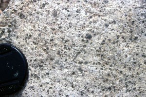 清内路峠の西に大島原の三等三角点がある。この付近は、稜線が広がって平らな地形となっている。大島原という名前がぴったりなところだ。残念ながら、今回はたどり着けなかった。 南沢山から富士見台にかけては、白亜紀末の巨大火山から噴出した火砕流堆積物がおおっている。溶結凝灰岩を主体とする岩石で、総称して濃飛流紋岩類と呼んでいる。火砕流は雲仙の噴火で知れわたったが、このときは規模が小さかったため堆積物としてはほとんど残っていない。ところが、濃飛流紋岩類はこの付近を南限として飛騨地方を中心に広い範囲に分布している。溶結凝灰岩とは、流れ出した火砕流自身のもつ熱で硬く溶結した凝灰岩だ。そのため、花崗岩よりも風化に強く、このあたりでは尾根部をつくっている。 溶結凝灰岩ができた後、地下でマグマが固まり花崗岩ができる。溶結凝灰岩に近いところでは、貫入岩のような斑晶がめだつ花崗岩ができる。転石を見ながら、過去の出来事を想像するのも面白い。 |