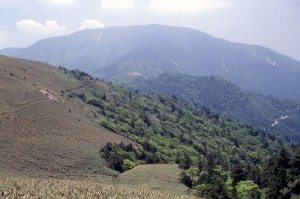 南沢山から横川山をへて富士見台までは、ゆるやかな稜線がつづく。稜線は偏形樹となった灌木とササ原、東斜面はカラマツ林となっている。西斜面には針広混交林の自然林が残っている。 かつて中津川から南沢山をへて清内路へ向かう清内路道と呼ばれる道があった。西の中津川側には、うっそうとした自然林の中に、今でも古い石畳が残っているという。古文書によると、この道は江戸時代中期には通行禁止となっていて、古道復活の嘆願書が出されていたという。このことから、かなり古い時代から利用されていたことが分かる。 |