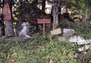 1996年に権現社の再建がなされ、石でできた新しい祠が設置されている。周辺には、学校登山を記念したプレートがたくさん置かれている。手前には鳥居の跡もある。 西春近小学校のホームページによると、昭和10年から学校登山が行われていたという。戦後しばらく途絶えていたが、現在では6年生の伝統行事となっている。 |