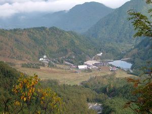 正沢川にそって車道をのぼっていくと、樹林が茂っていて確認できないが、対岸で濃ヶ池川が合流する。この濃ヶ池川にはかつて天然ダムがあった。 最近、この濃ヶ池をつくった崩壊地とその堆積物の調査がなされ、大棚入山の南西斜面が17世紀頃より前の比較的新しい時期に崩壊したことが分かった。このときの崩壊土砂は1千万立方メートルを超えていたという。1984年の長野県西部地震の時には御嶽山の南側山腹が崩壊して王滝川をせき止めて天然ダムをつくった。このときの崩壊土砂は3千万立方メートルだったので、これに近い巨大崩壊だったことになる。 巨大崩壊は大きな地震で起こりやすいことから、大棚入山の崩壊も地震であったと見られている。大棚入山に大きな揺れを及ぼす地震としては、上松断層などの木曽山脈西縁断層帯や伊那谷断層帯が上げられる。木曽山脈西縁断層帯は13世紀頃に地震を起こしたらしい。また、1586年には阿寺断層系が活動して各地に崩壊をもたらした天正地震がある。大棚入山の巨大崩壊は上松断層が活動した13世紀か、阿寺断層が活動した1586年のどちらかの地震で発生したと考えられている。 |