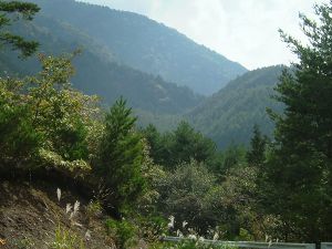 福島Bコースの登山口は、ちょうど上松断層の地形変換線の場所にある。樹木をさけて南と北の方角が見えるところに行けば、上松断層のつくった断層鞍部を観察できる。 南側の断層鞍部付近の地形図をみると、断層をはさんで地形に顕著な違いがあることに気づく。一つは断層の東側は傾斜が急で西側は傾斜が緩やかであること。とくに尾根部で顕著だ。次に断層の東側を流れてきた5〜6本の川が、断層付近で合流して2本にまとまって西側へ流れていくこと。さらに断層西側の丘陵からはじまる谷が3本もあることだ。 この3本の内、北側の谷は緩やかな河川勾配のまま両岸を掘り込んで駒の湯まで2km近くつづいている。この谷は上流部が切られた形をしている。おそらくこの谷は、北側を流れる八沢川の方が侵食力が強かったため、脆くなった断層付近で八沢川に上流部を奪われてしまったのだろう。このような現象を河川争奪という。これらの複雑な地形はすべて上松断層と関係しているようだ。 |