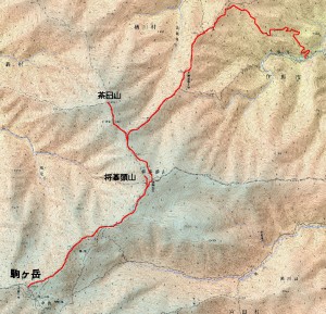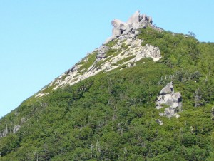 茶臼山と将棊頭山とをつなぐ稜線まで登れば、ハイマツとダケカンバがマサの白の中に映えてたいへん美しい。西斜面には背の低い針葉樹がハイマツに混じっているが、これらは強い西風で偏形樹となっている。 展望も抜群だ。すそ野を広げた御嶽山が目の前にある。木曽駒ヶ岳から麦草山へかけての凹凸のある稜線も素晴らしい。三峰川扇状地とその右奥に鋸岳から甲斐駒ヶ岳も見える。経ヶ岳から坊主岳方面への稜線は、山並みがいくつも重なっていて重厚な趣がある。行者岩をのせた三角形の山も印象的だ。 行者岩の花崗岩には北西−南東方向の垂直な節理が見られる。節理が密に発達すると、風化が進んで岩屑斜面やマサになってしまうが、間隔が広いと岩塔になりやすい。行者岩も節理がそれほど発達しなかったため岩塔になったのだろう。岩塔の南西側はすでに西側へ倒れかかっていて、地震がきたら落ちてしまいそうだ。茶臼山方面から岩塔をみると、座り込んだ行者のように見える。 茶臼山へ登る木曽駒高原からの道は、長らく廃道となっていたが、最近地元の方々によって整備されたらしい。正沢川の徒渉点に吊り橋が架けられ、山頂に新しい祠が建てられている。 |