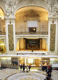 インフォメーションで日本語のパンフレットをもらい、荷物を預けて入場券を購入して展示場へ入る。某ガイドブックでは60歳以上の方の入場は格安と書かれていたが、料金は一般の大人と同じだった。入口で日本語のオーディオ解説機を借りる。 |