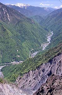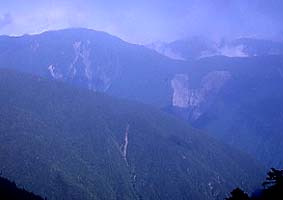 | ▲赤崩の頭からみた大井川上流 |
