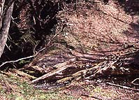 | ▲線状凹地にできた湧水 |