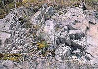 兵越峠から東へ草木川源流へ伸びる林道を行くと、泥岩・砂岩以外に、チャート・緑色岩・石灰岩が現れる。泥岩やチャートから、白亜紀の放散虫化石がみつかっている。