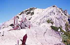 ■白い砂と岩からなる山頂