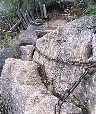 | ▲梯子とクサリがつづく屏風岩 |