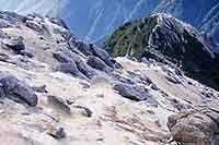 | ▲節理をもつ花崗岩と鋸岳(右上) |