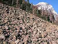 | ▲岩塊斜面と摩利支天 |