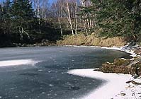 | ▲線状凹地にできた中郷お池 |