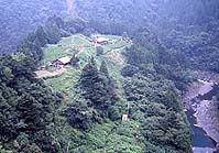 民家は大井川に面した段丘に発達し、旧河道は民家に近いところから畑、茶畑、ヒノキの植林地として利用されている。最近、サルの群が降りてきて畑を頻繁に荒らるようになったという。