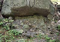 西日影沢ぞいに下りはじめると、すぐに大岩がでてくる。この大岩はハンレイ岩や緑色岩・蛇紋岩礫を含む巨大な礫岩の転石だ。とくにハンレイ岩の礫は直径数mもあるような大きなものだ。