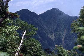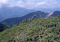 布引山をすぎ亜高山植生の樹林帯をしばらく歩くと、二等三角点のある笊ヶ岳(2629m)に到着する。東には樹林に覆われた小笊とその先に富士山、西には大井川東俣を隔てて赤石岳や荒川岳がみごとだ。この山頂付近にわずかにハイマツ群落がみられる。