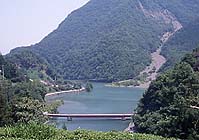 | ▲笊ヶ岳登山口の雨畑ダム湖 |
