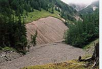 | ▲上倉沢崩壊地から押し出した土砂 |